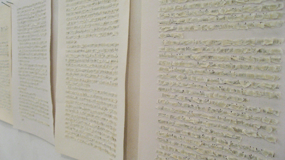 Cheng Has Tried to Read That Book, 2008-2009, tapes on novel pages Solo exhibition at Ruimte Morguen, Antwerp, Belgium